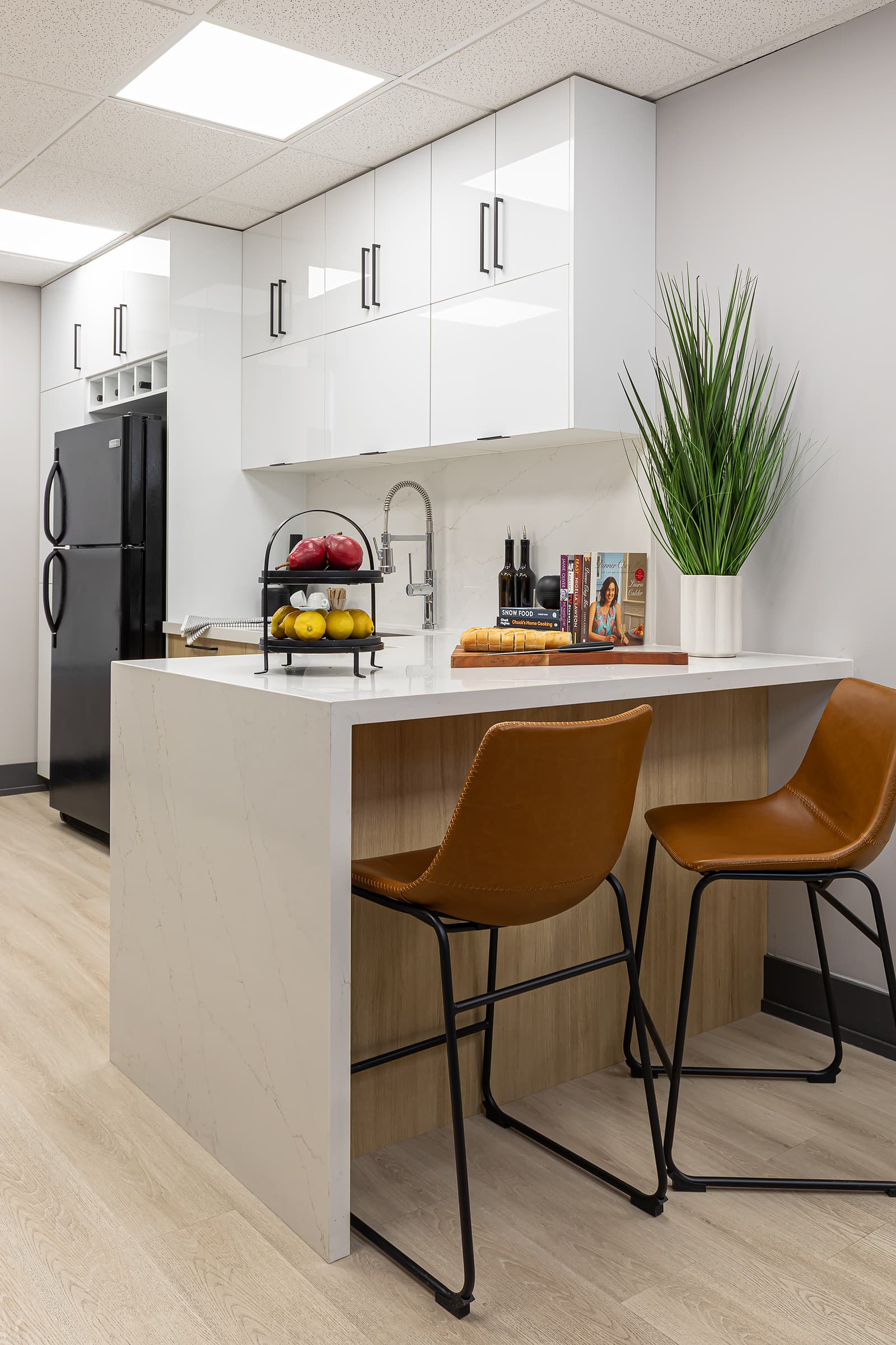 Explore fully assembled cabinetry displays. Discover our extensive range of cabinetry, hardware, door finishes, door styles, and countertop materials designed to elevate your multi-unit developments.