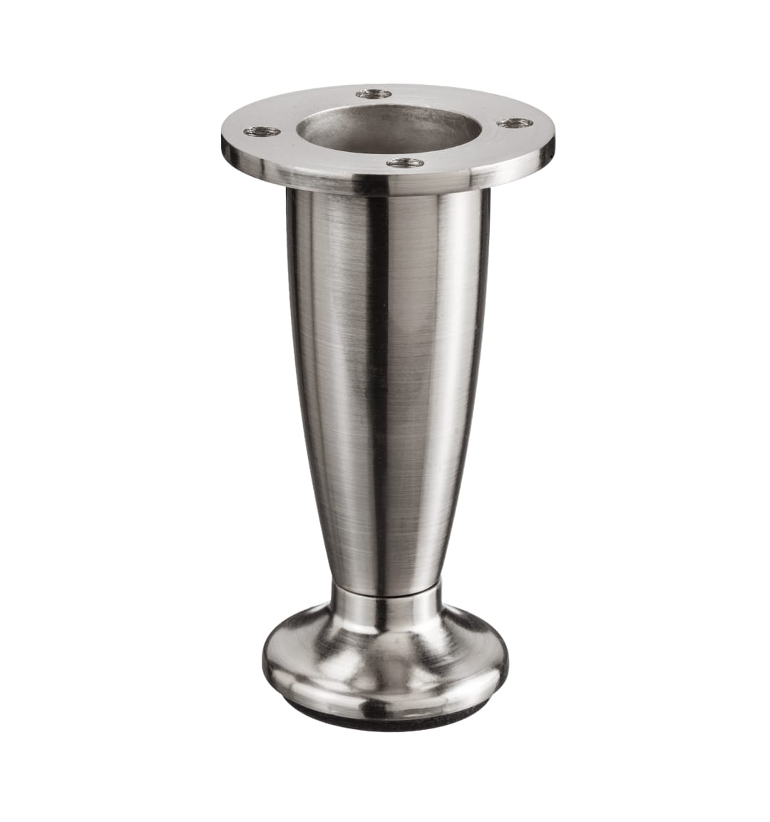 A modern metal leg with a tapered funnel shape, offering strong support and a sleek, contemporary look for cabinetry and vanities.