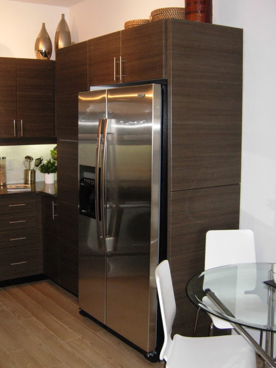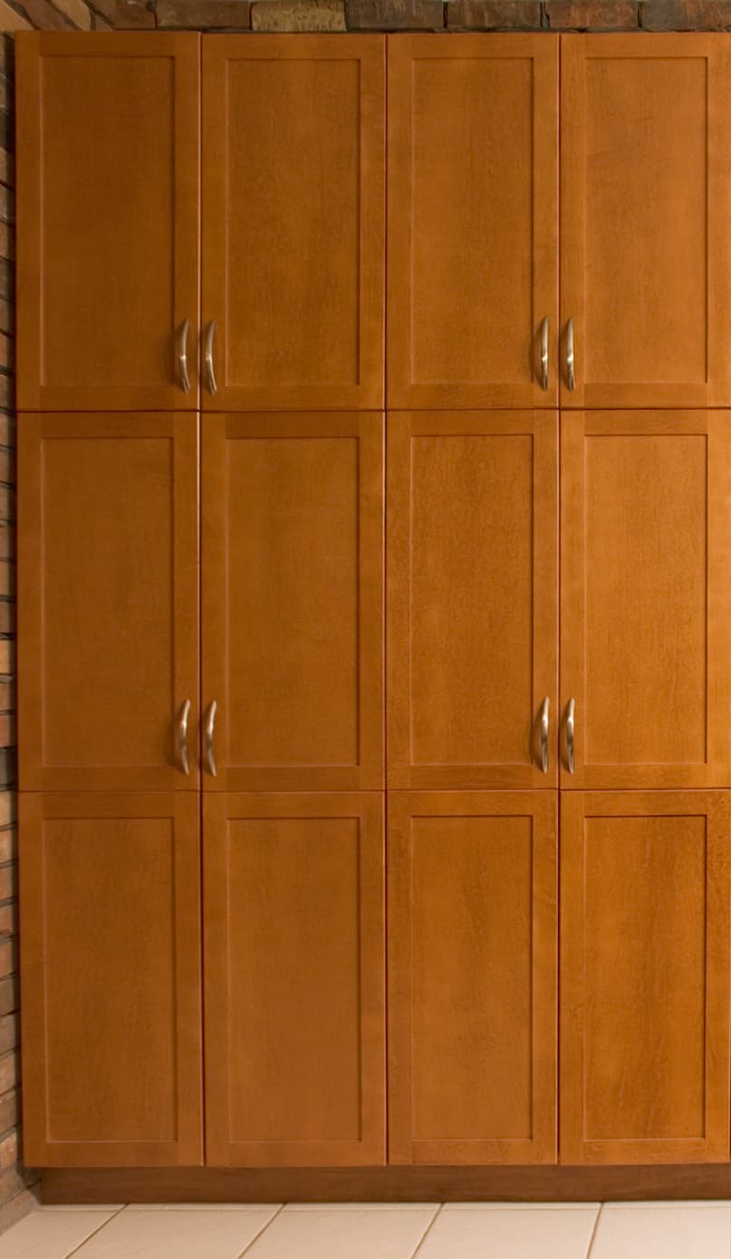 Tall upper cabinets that extend toward the ceiling for added kitchen storage space.