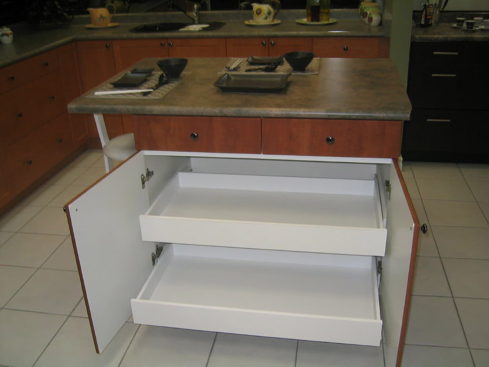 Base cabinet with top drawers and full-height doors for accessible kitchen storage.