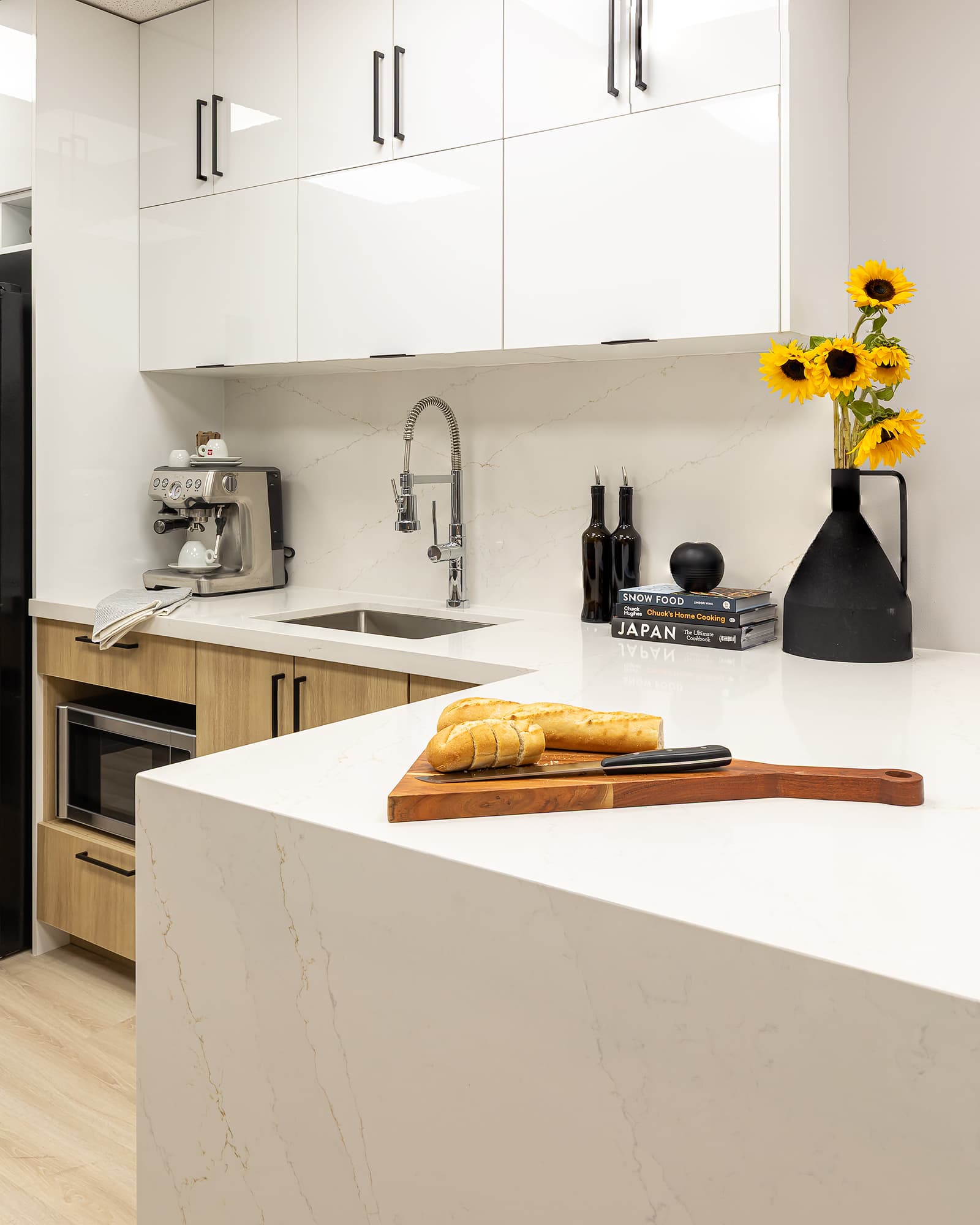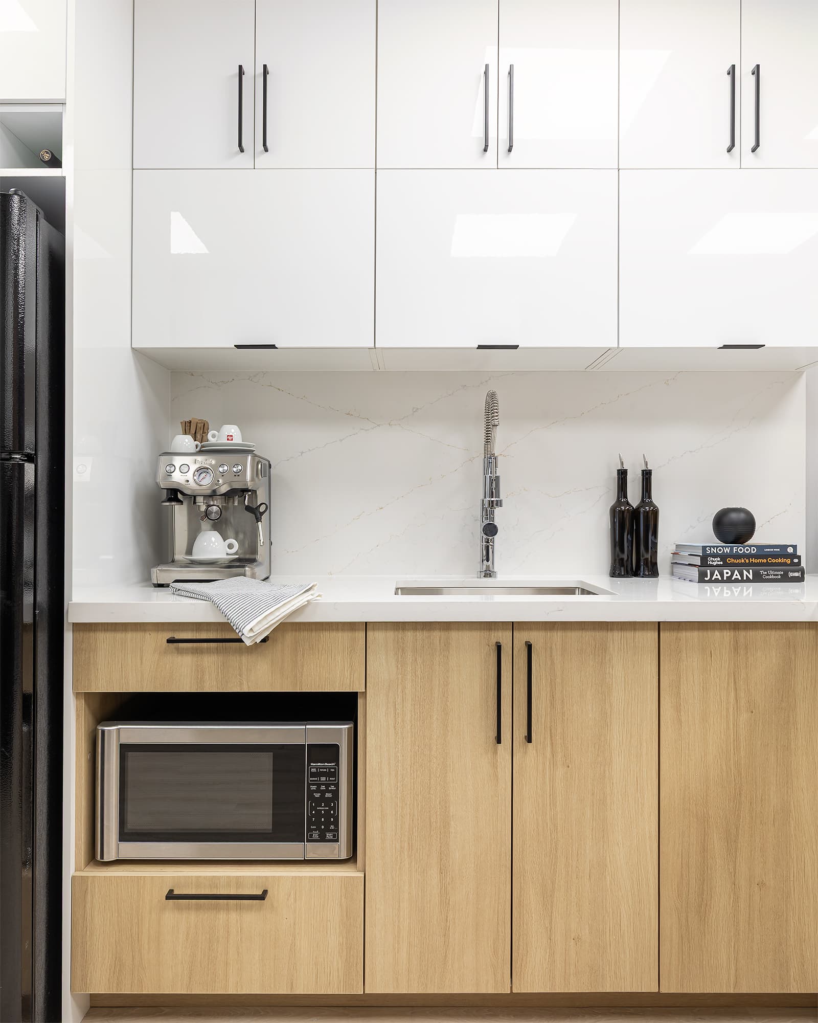 Explore fully assembled cabinetry displays. Discover our extensive range of cabinetry, hardware, door finishes, door styles, and countertop materials designed to elevate your multi-unit developments.