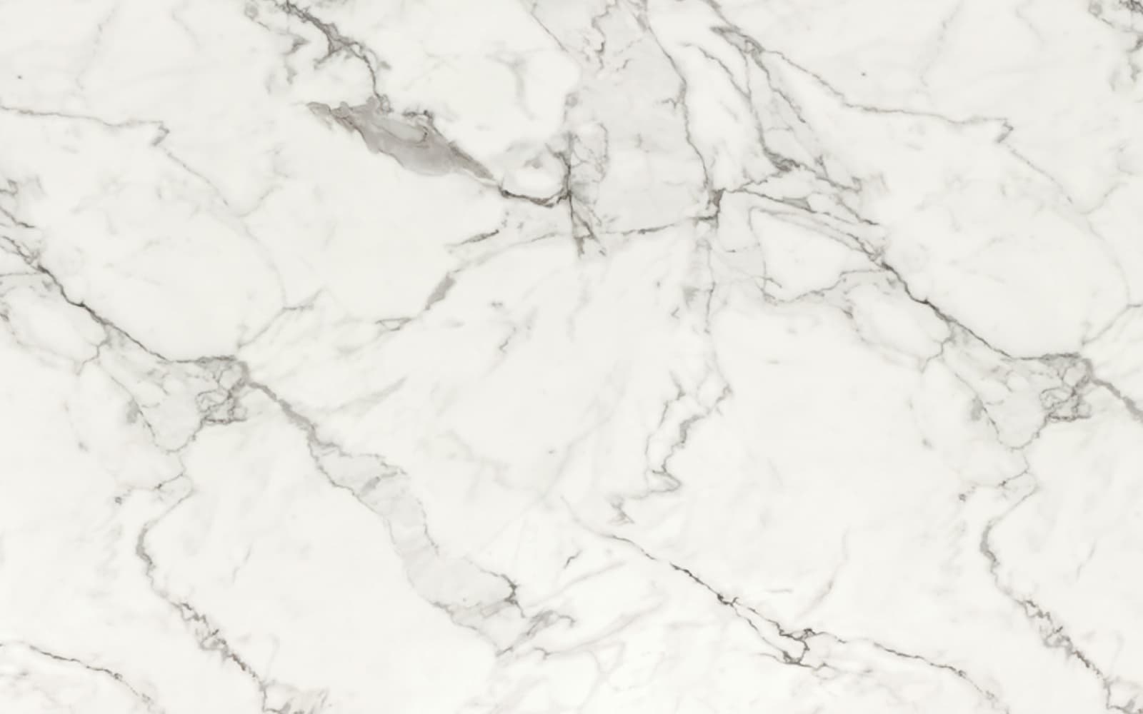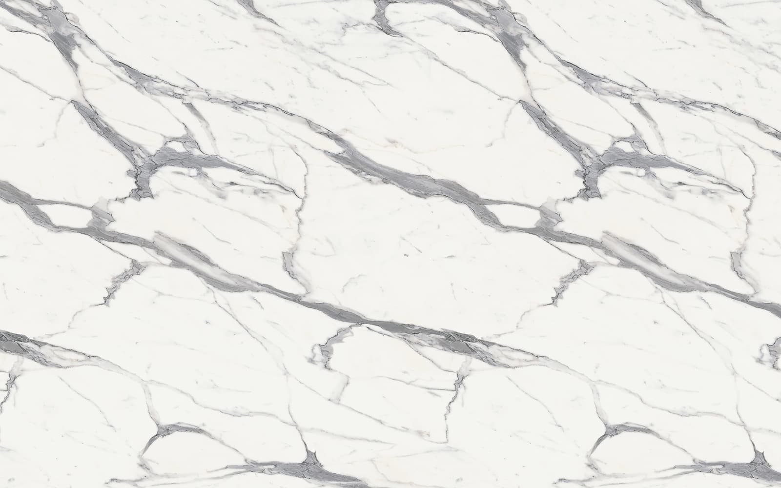 Calacatta Marble features a crisp white background with bold, flowing grey veining, offering a timeless, high-end marble look.