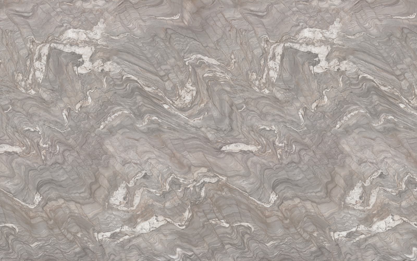 Neapolitan Stone showcases dramatic swirls of taupe, grey, and ivory in a bold, fluid pattern that evokes the movement and richness of natural stone.