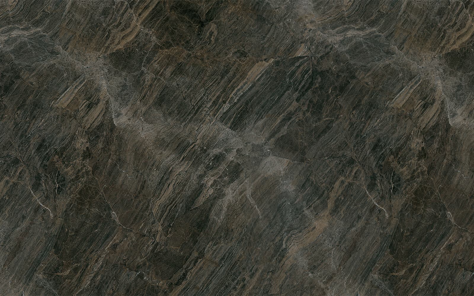 Jatoba Brown displays rich, dark brown tones layered with deep charcoal and subtle taupe veining, creating a dramatic, stone-inspired look with organic depth and movement.